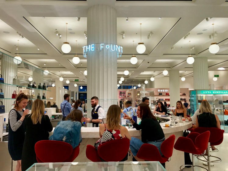 It was a lovely Friday afternoon; I had just finished post-work draanks with the interns and was making my way to Oxford Street. Considering that I was buzzing with excitement (and slightly because of the booze), the walk there wasn’t one bit draining and felt like minutes. I entered Selfridges, making my way past the makeup hall, then the food hall, finally entering the new luxury accessories hall, where the Fount awaited. The Fount is located in the heart of the new luxury accessories hall, and is such a beautiful, exquisite and elegant place to unwind and bring on the weekend, especially after such a long week of work. After admiring the stunning 14-seater bar, I took my seat.